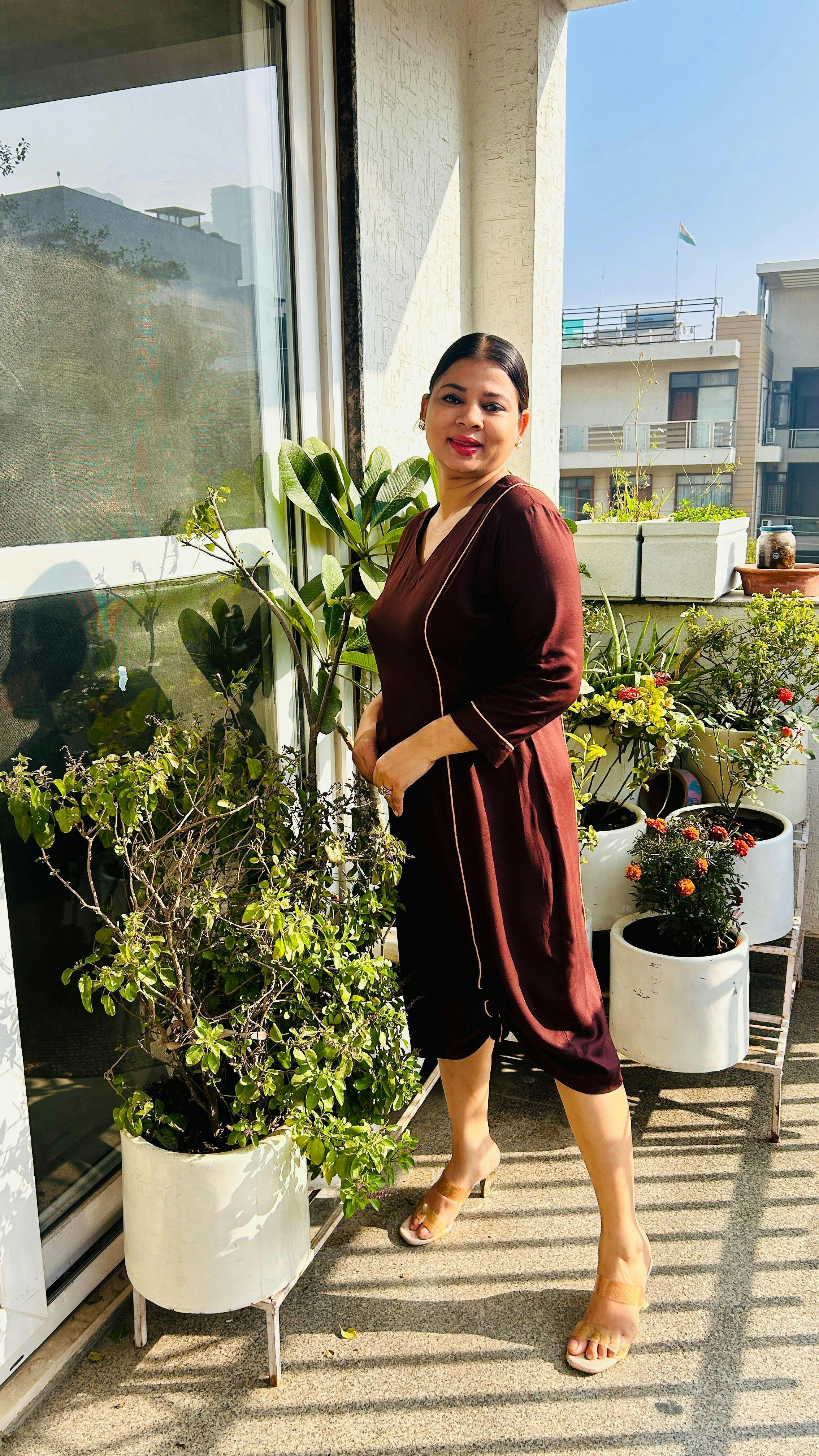 Absolutely loved this chocolate brown bodycon dress from Lataree. The fabric feels soft, comfortable, and hugs the body beautifully without feeling restrictive. The gathered hem detail adds a flattering touch and gives the dress a classy yet trendy vibe.