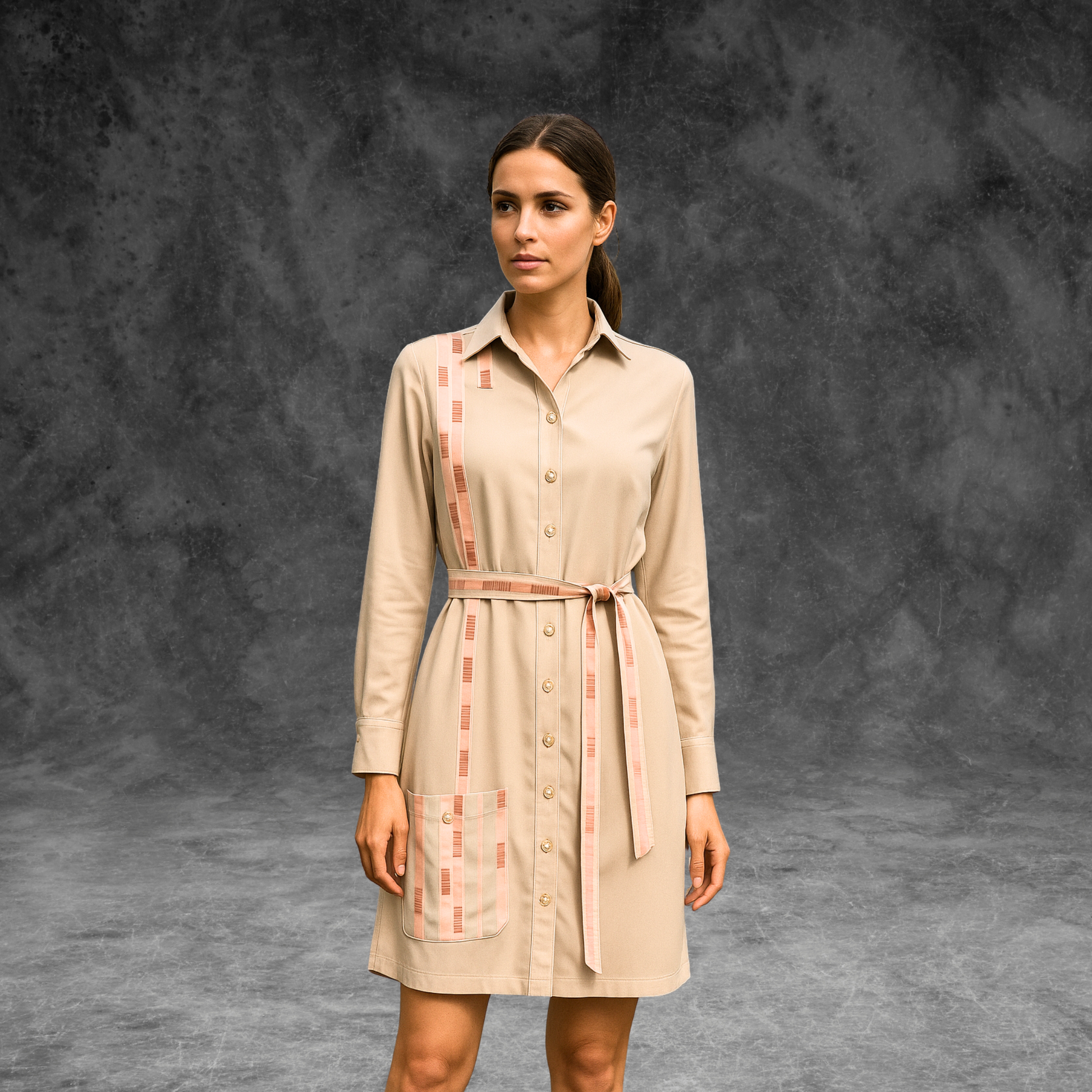 Redefine elegance with LATAREE’s blush pink shirt dress, featuring bold striped accents and a functional patch pocket for added style. Designed with a button-down front and long sleeves, this dress for women is crafted from premium, skin-friendly fabric for all-day comfort. Perfect for casual outings or workwear, its exclusive, non-repeated design ensures you stand out effortlessly. Affordable sophistication meets modern practicality — add this versatile piece to your wardrobe today!
